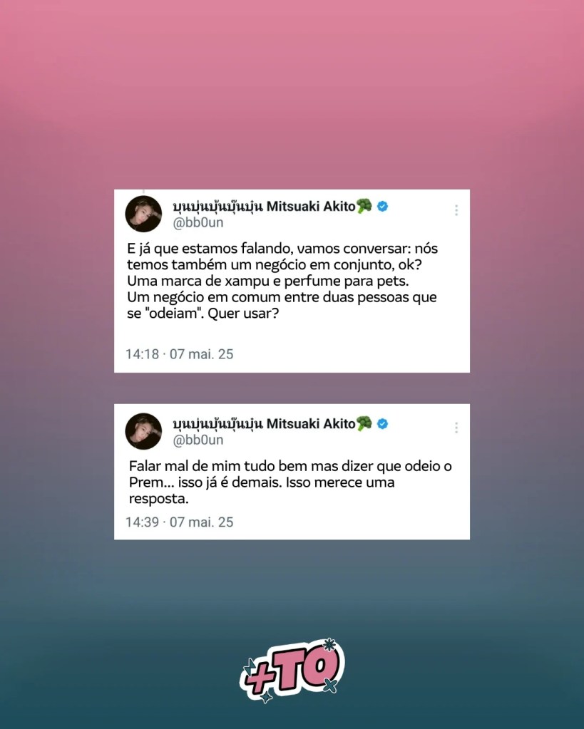 “Se eu odiasse ele, eu teria dito. Ainda vamos continuar juntos por muito tempo”, escreveu Boun, deixando claro que sua relação com Prem é genuína, seja como amigos ou colegas de trabalho. Além disso, ironizou as acusações, mostrando que não se sente intimidado por quem tenta desacreditar sua conexão com Prem.
