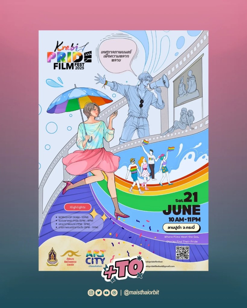 No dia 21 de junho, a cidade de Krabi, reconhecida oficialmente como “Cidade das Artes” pelo Ministério da Cultura da Tailândia, será palco do primeiro ‘Krabi Pride Film Fest’. O evento inédito marca um passo importante na promoção da diversidade e da representatividade LGBTQIAPN+ no país por meio do cinema e da arte.