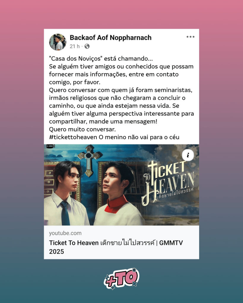 Aof Noppharnach deu início à fase de pré-produção de sua nova série, ‘Ticket To Heaven’, e usou suas redes sociais para um pedido curioso e significativo: histórias reais de coroinhas.